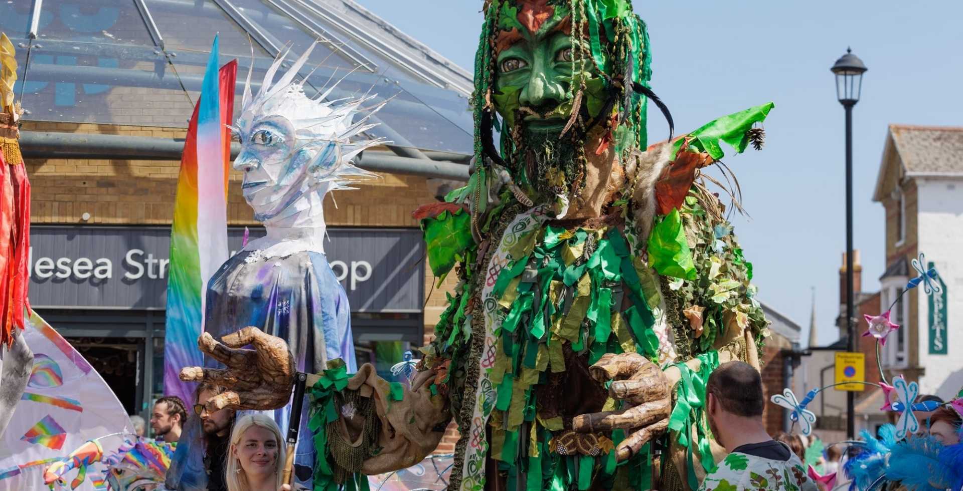 ‘Folktastic Island’ is a two-year New Carnival project exploring the Isle of Wight’s folk heritage through seasons, traditions, myths, legends and place-based stories. Working with Isle of Wight College students, schools, local families, writers and artists, engaging young people in researching Island Folklore and reimagining it through creative practice. Linking heritage with contemporary themes such as the biosphere, climate change and equality.